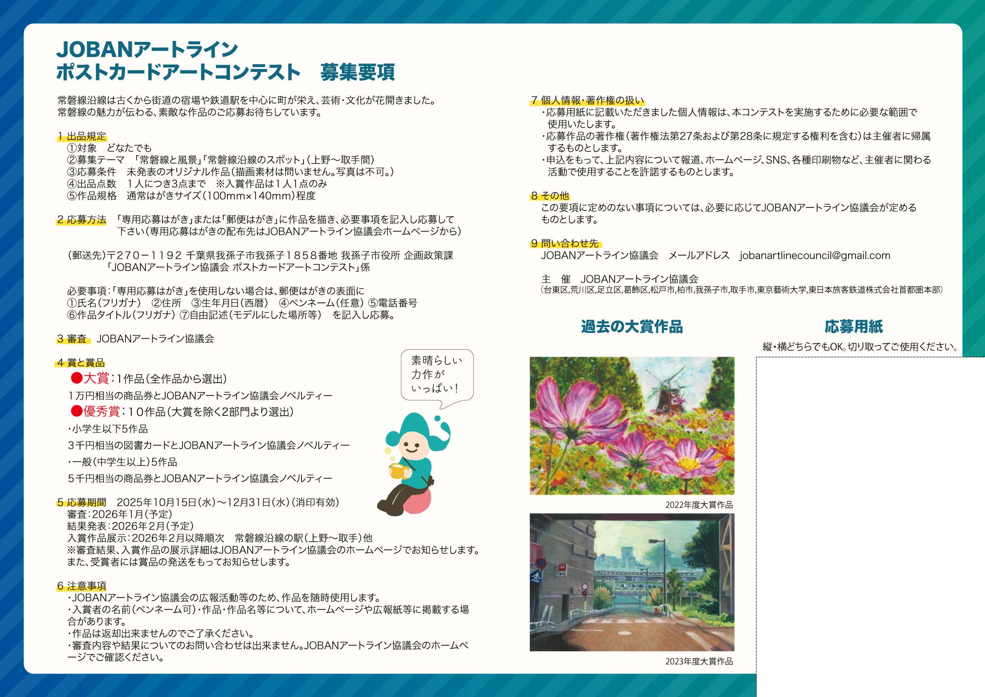 現在位置 ホーム > 文化活動・観光 > 文化芸術 > JOBANアートライン > ポストカードアートコンテスト作品募集
