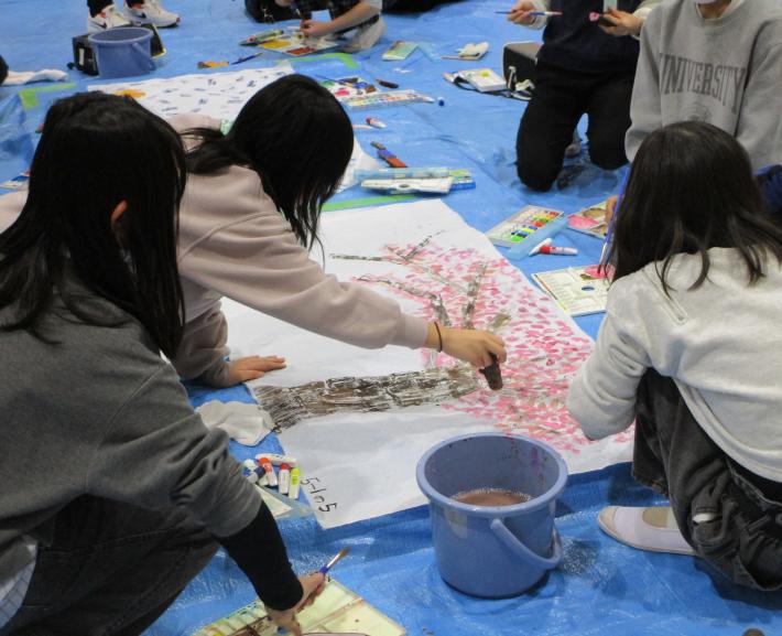 グループごとに「何色を使うか」、「どんな桜を描きたいか」、「どの部分を担当するか」など相談して、作品の制作にとりかかりました。