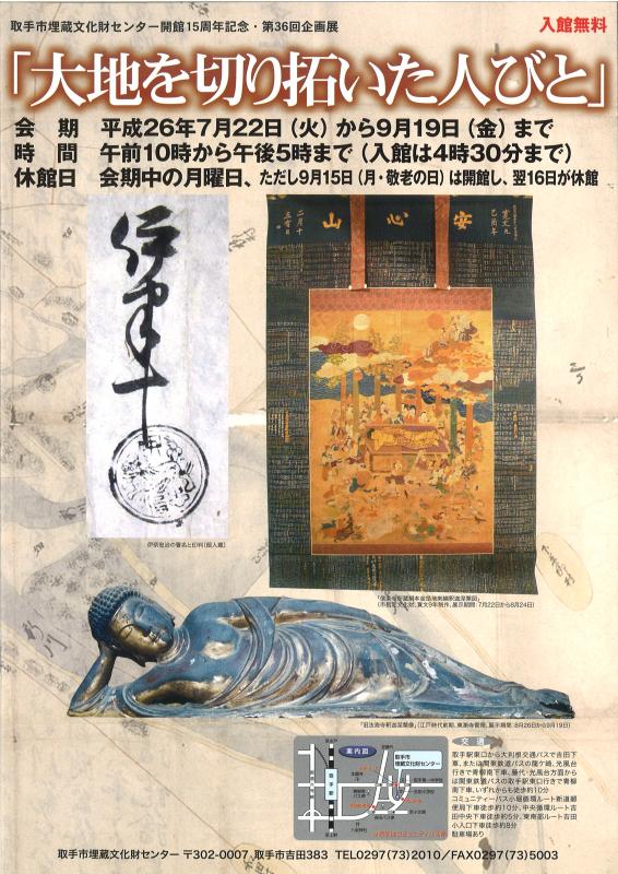 小貝川流域に広がっていた未開の地の開発に果敢に取り組み、現在でも相馬二万国・谷和原三万国と呼ばれる穀倉地帯を作り上げた先人たちの軌跡をたどります。また、安定した生活を手に入れた人びとが作り上げ、今日まで伝えてきた文化財を紹介しました。
